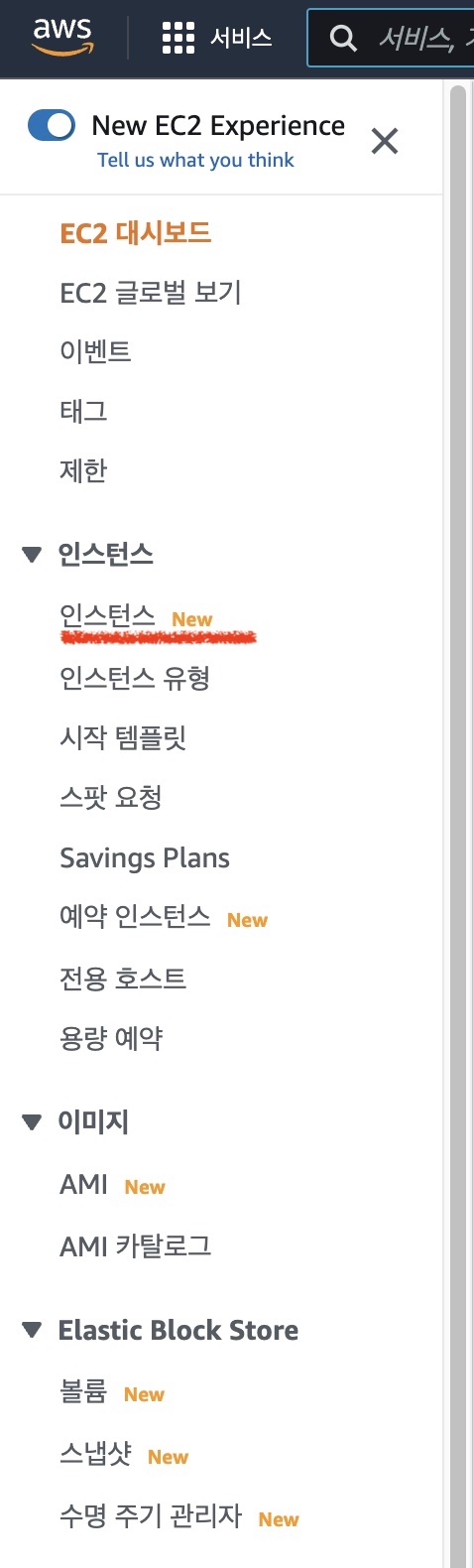 왼쪽 사이드 바에서 인스턴스를 클릭해준다.