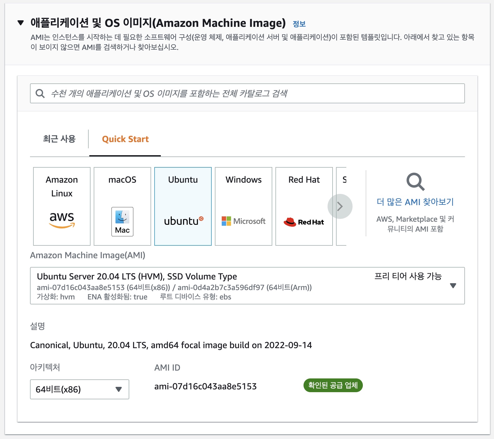 ubuntu 20.04으로 설정 - 인스턴스 유형
